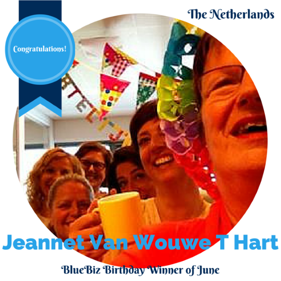 The BlueBiz birthday winner of June is Jeannet Van Wouwe T Hart from the Netherlands. She won two tickets to an Air France KLM destination of her choice.