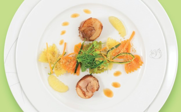 2015年2月和3月,Régis Marcon 相继为头等舱创制前所未有的一道头盘和五道热菜。这位大厨首推法国本土的最优产品,推出的美食地道可口。